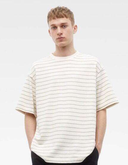Camisa beige sin cuello para hombre